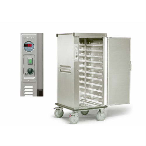 Deze robuuste en praktische warmhoudwagen, ook wel bekend als banketwagen, is de ideale oplossing voor het warmhouden van uw gerechten op evenementen en feesten. De wagen biedt een capaciteit van 18 regalen met een tussenafstand van 7,5 cm, waardoor er voldoende ruimte is om uw etenswaren op een georganiseerde manier te plaatsen. De banketwagen wordt exclusief gastronormbakken of roosters geleverd!