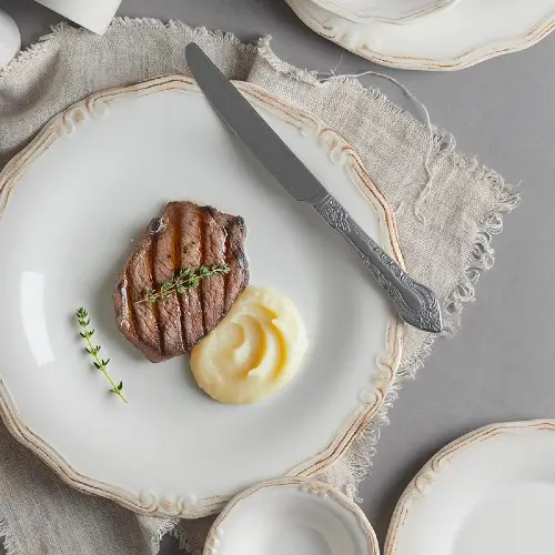 Dit hoogwaardige serviesstuk combineert verfijning met functionaliteit en zorgt ervoor dat jouw culinaire creaties nog meer tot hun recht komen. Ideaal voor speciale gelegenheden waarbij een stijlvolle presentatie centraal staat. Huur het platte bord Patina Tiffany 25 cm bij Rozema Verhuurbedrijf voor een onvergetelijke dinerervaring.