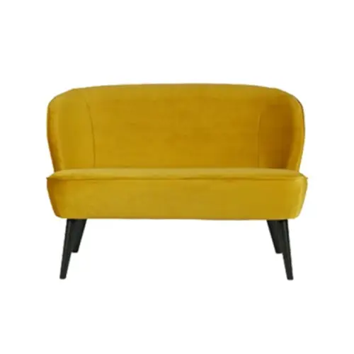 Huur deze stijlvolle bankje in Cosmo Velvet bij Rozema Verhuurbedrijf in Delft! Dit luxe loungebankje in een diepe okergele kleur heeft een chique uitstraling door de fluwelen bekleding. De zwart gelakte beukenhouten poten geven de stoel een elegant en modern karakter.