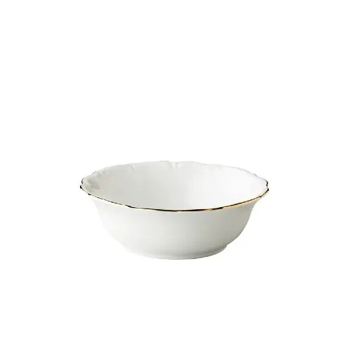 Een stijlvolle tafelsetting krijg je met deze Kom Maria Theresa goud 15 cm met een witte kleur en goudrand afwerking. De ronde vormen en hoge rand zorgen voor een speelse twist.