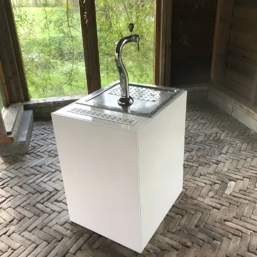 Met de Ombouw “Whitline” geeft u het David-tapsysteem een geheel andere uitstraling. Dus wil je een keer zelf een biertje tappen om jouw feest, bruiloft of bedrijfsfeest echt tot een succes te maken? Dat kan met deze mobiele biertap David met ingebouwde koeling. De koeling in de biertap zorgt ervoor dat de twee 20 liter fusten gekoeld worden. De fusten bier zijn ook via ons te bestellen, zodat je nergens omkijken naar hebt!