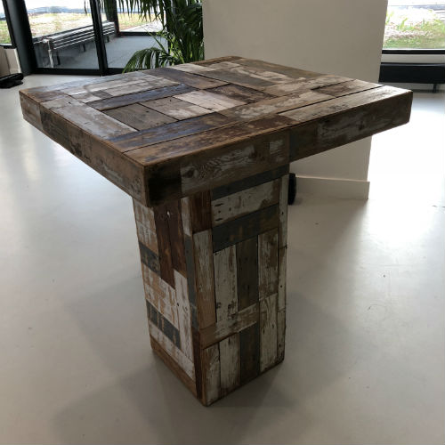 Statafel “Woodz” 90 x 90 x 110 cm behoort bij onze industriële collectie, welke bestaat uit bars, tafels, banken, accessoires, decoratie ect. ect.