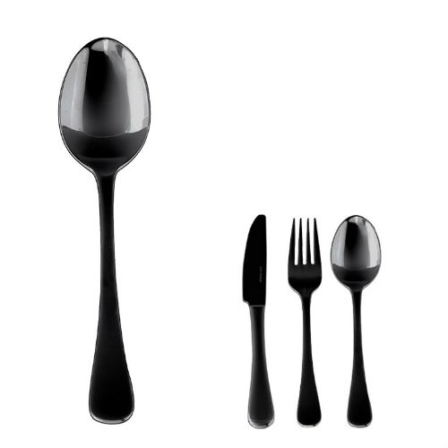De Tafellepel Zwart – Hepp heeft een Vintage afwerking. Dit bestek is zwart van kleur en gemaakt van hoogwaardig chroomstaal 18/0. Voor elke gebeurtenis kunnen wij u voorzien van het geschikte bestek! Wij hebben een zeer breed assortiment aan goud bestek waardoor u echt keuze kan maken.